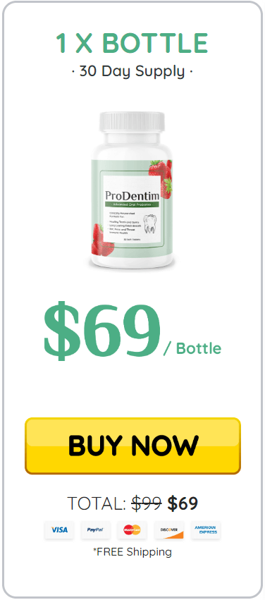 It is priced at $49 to $69 per bottle, depending on the number of bottles you order. Here’s how pricing breaks down when ordering ProDentim supplement online today: